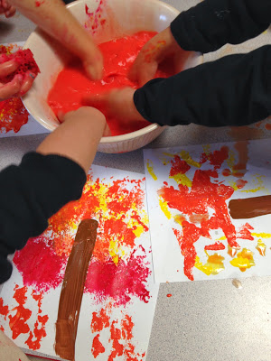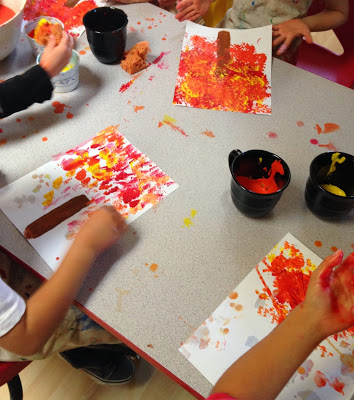 - Orange, red, yellow, and brown paint (I recommend a washable tempera)