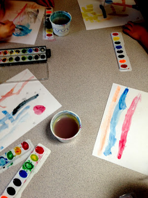If you try this with a large group of young children, be prepared for a lengthy clean up in the art room, and the bathroom where they will wash their inevitably, very much paint-covered hands.