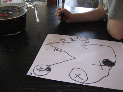 First we drew our maps with the Sharpie. The kids loved this of course, and each made several: