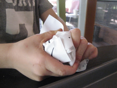 Tip - gently slide the edge of the paper back and forth through the flame. Keep it moving and try not to really let it actually catch on fire. After a few passes through the flame, take it out. The edge will be glowing. Put the edge under some running water to extinguish the glow. Afterwards you can let the paper dry on its own, or if you are impatient as we were, then simply pop it back into the oven for a few more minutes to dry off.