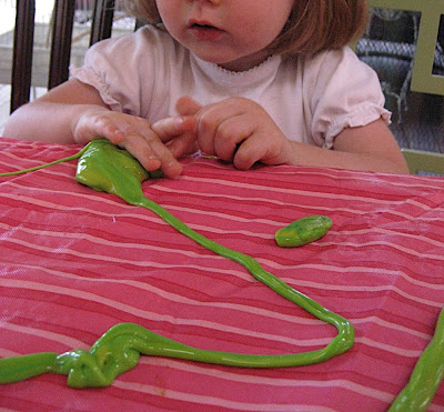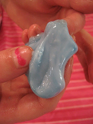 At her suggestion, we combined it with some white glue and made this wonderful, smooth, shiny, slimy, icky, bizarre goop!
