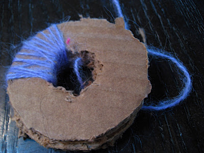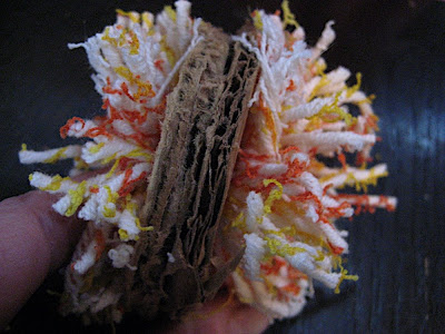 Pom poms are surprisingly easy and fun to make. All you need is some sturdy cardboard (corrugated is best) and leftover yarn: