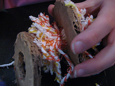 I remember my mother teaching me how to make pom poms and I have a distinct fondness for them, so I was quite excited to make pom poms for a higher purpose than merely a place to stick googly eyes.