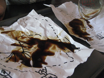 First we drew our maps with the Sharpie. The kids loved this of course, and each made several: