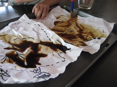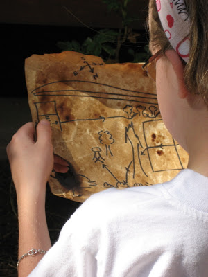 While we were making the maps, my daughter asked if I would make a “real” treasure map for them, and then hide some treasure somewhere for them to find using the map.