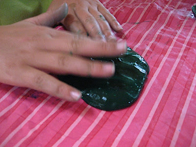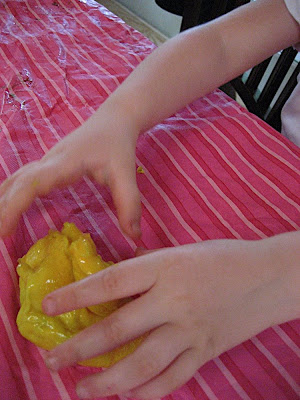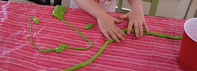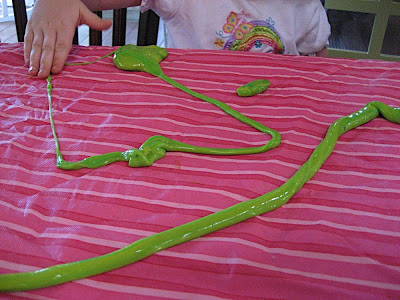 At her suggestion, we combined it with some white glue and made this wonderful, smooth, shiny, slimy, icky, bizarre goop!