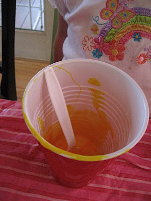 My 2 year-old especially loved this. She sat at the table all alone with her goop for about a half an hour after the other kids had run off to play on the swing set. The sensorial experience for her was totally absorbing: