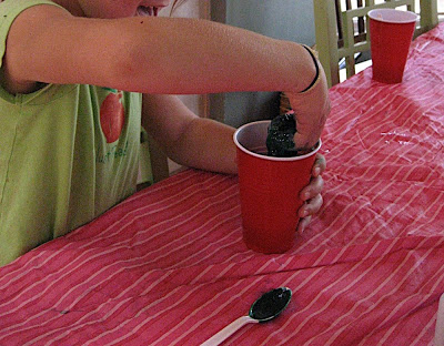 But the children quickly abandoned the spoons for the pleasure of feeling this stuff with their hands: