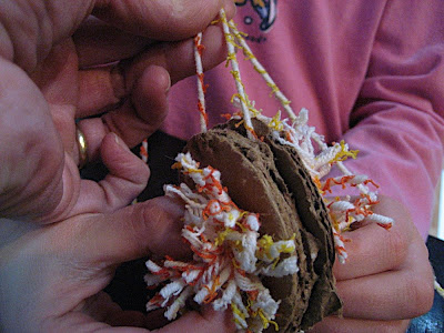 I remember my mother teaching me how to make pom poms and I have a distinct fondness for them, so I was quite excited to make pom poms for a higher purpose than merely a place to stick googly eyes.