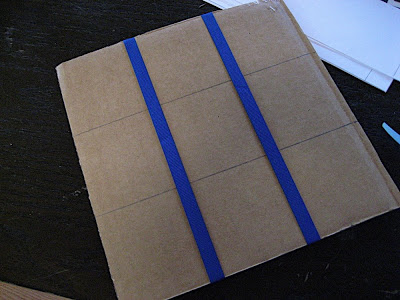 We cut strips of card stock that were the same height as our rows of three squares, and slightly longer.