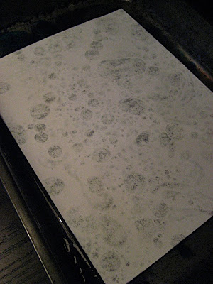 The tricky part is getting the paper off the towel. Carefully peel up one end until you can pull the sheet off in one piece. I found that it was actually a bit easier to put a large plate upside down over the paper, lift the towels and the plate all together, and then flip it all right side up so the paper lands on the plate (kind of like getting rolled pie pastry from a sheet of wax paper into a pie dish!). Gently peel off the towel and you’ll have a lovely whole sheet of paper on the plate.